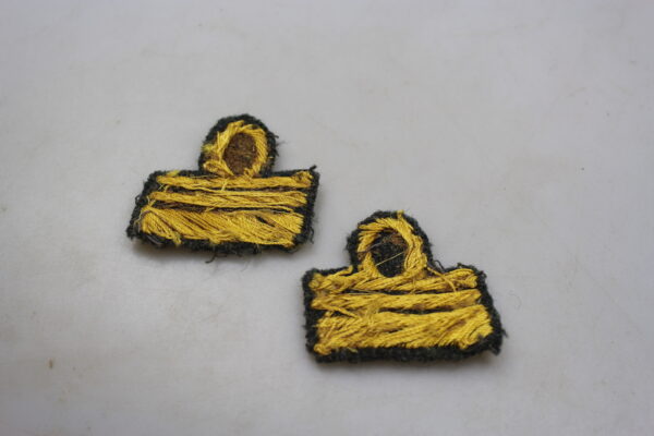 Coppia di gradi “ridotti”, fatti in rayon, da Tenente Colonnello del Regio esercito Italiano della Seconda Guerra Mondiale. Usati, buono stato di conservazione.