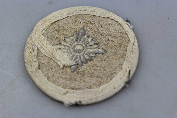 Grado da Oberschutze, ricamato in filo grigio su base in drillich spigato, in colorazione ecrù, per giacche da fatica. Buono stato di conservazione.