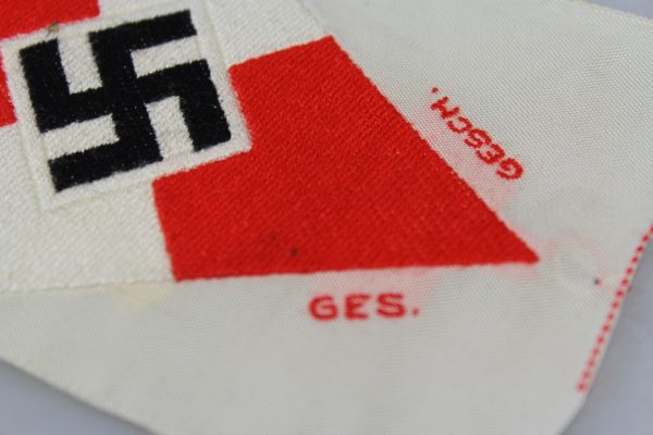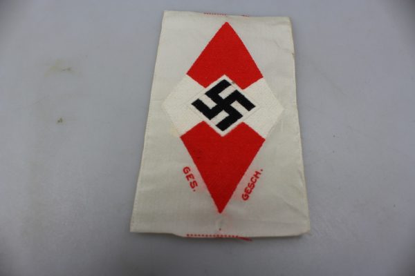 Emblema da giacca della BDM, produzione Be-Vo. Marcato Ges.Gesch. Mint condition, tagliato da rotolo, perfetto stato di conservazione. Presente etichetta in carta RZM.
