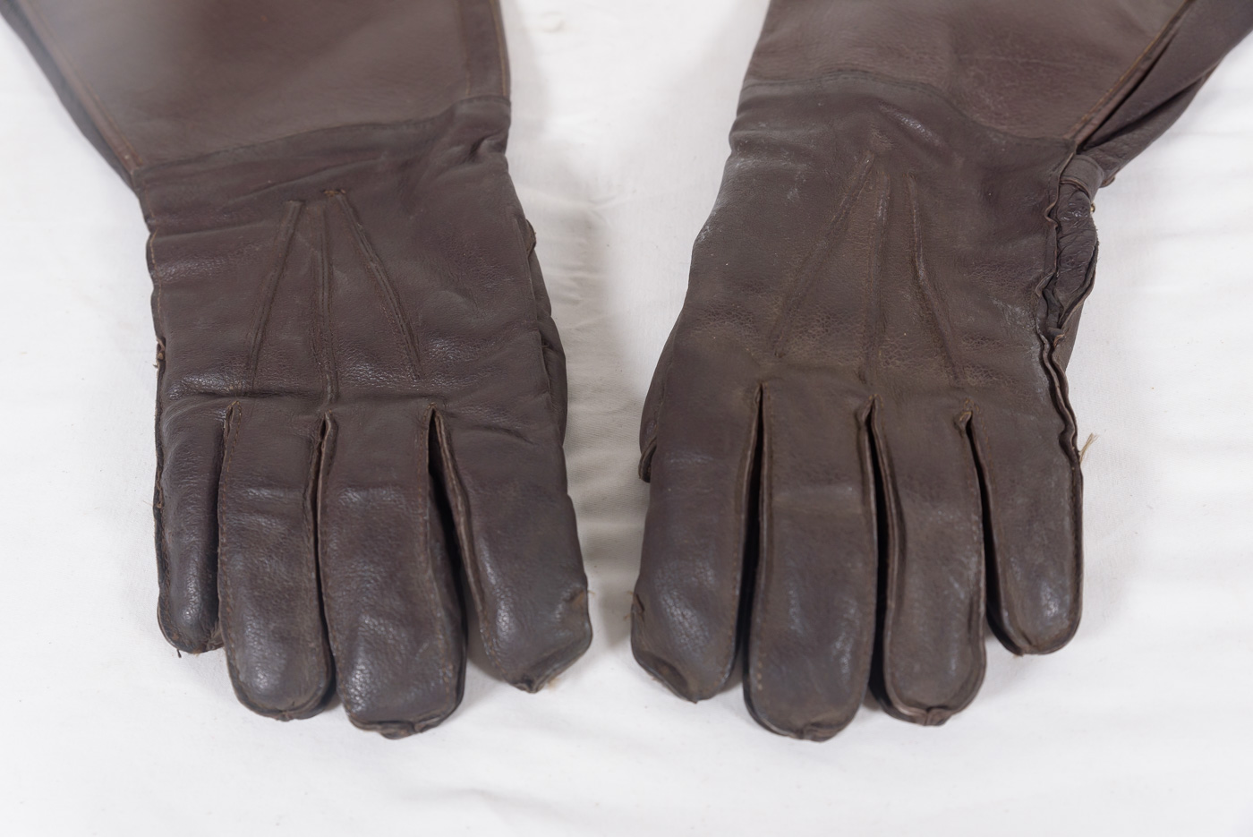 Ottimo paio di guanti fatti in pelle marrone, da pilota della Luftwaffe, marcati con RBNr. Usati, buono stato di conservazione.