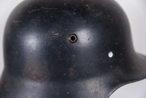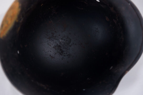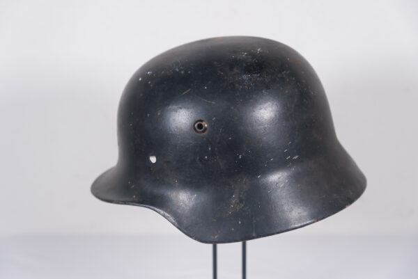 Guscio di elmetto Tedesco M.35, produttore SE, taglia 60/52-53, colorazione nera, riuso postbellico Ceckoslovacco. Buono stato di conservazione.