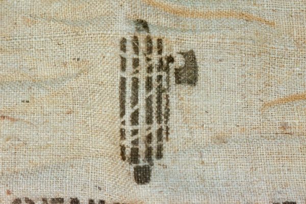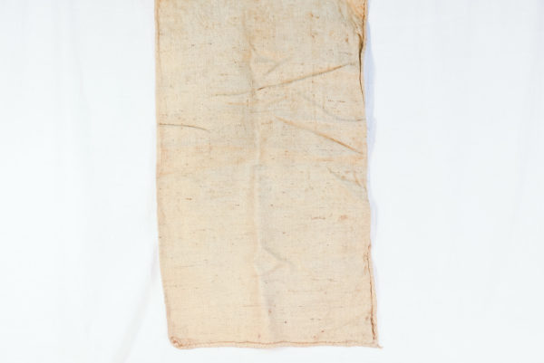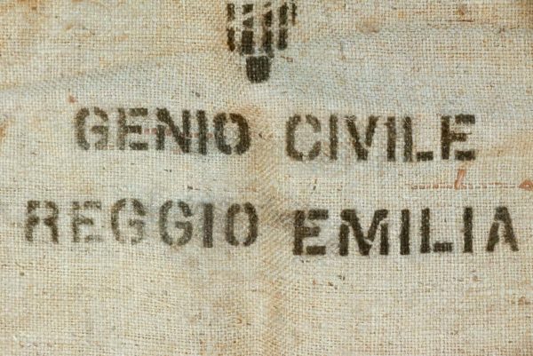 Sacco in juta del Genio Civile di Reggio Emilia con emblema del PNF, che riempito di terra, veniva usato per rinforzare gli argini del fiume Po in caso di piena. Dimensioni cm 90×50.Fondo di magazzino, buono stato di conservazione..