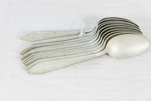 N°10 cucchiai in alluminio da mensa truppa della Regia Aeronautica, con emblema in rilievo. Buono stato di conservazione.