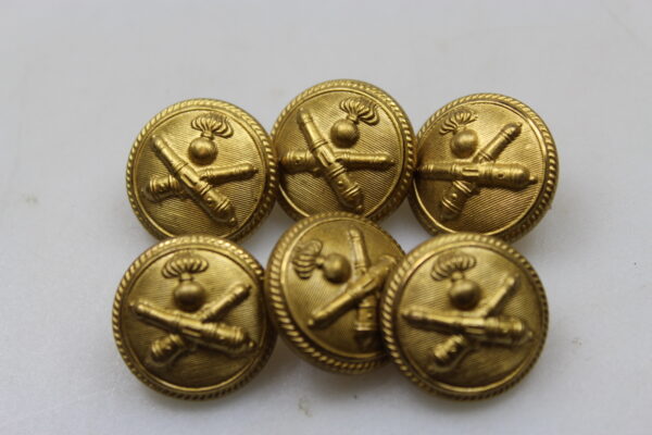 #6 bottoni per giacca da Ufficiale di Artiglieria del REI, diametro 20 mm. Perfetto stato di conservazione.