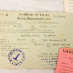 Certificato di lavoro presso la Michelin dal Novembre del 1944 all’Aprile del 1945.