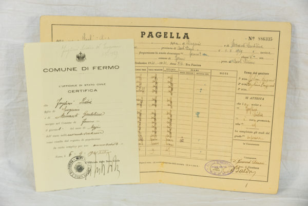 # 6 pagelle scolastiche del periodo del Ventennio, differenti annate e classi scolastiche. Buono stato di conservazione.