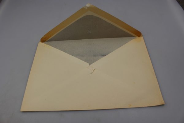 Busta in carta pregiata con impresso la dicitura: Comando Supremo e con stemma Savoia, dimensioni cm 22×15. Perfetto stato di conservazione.