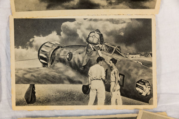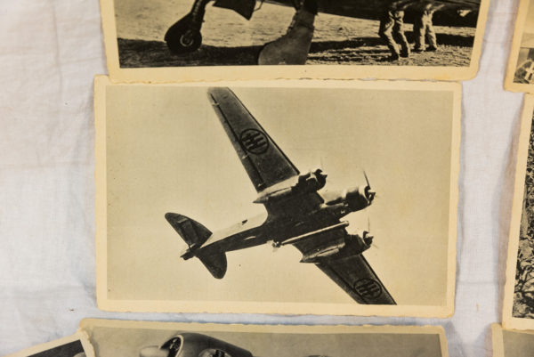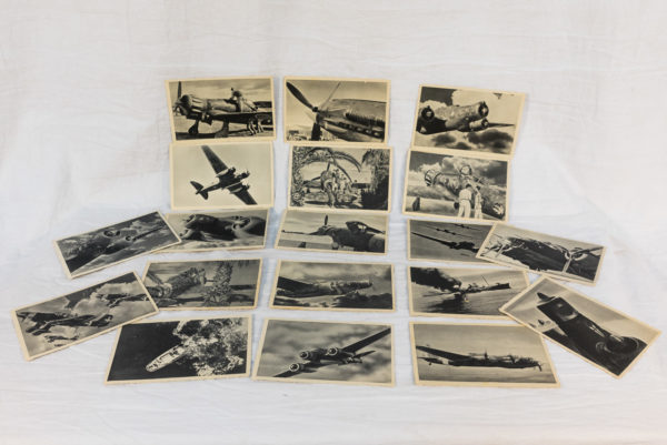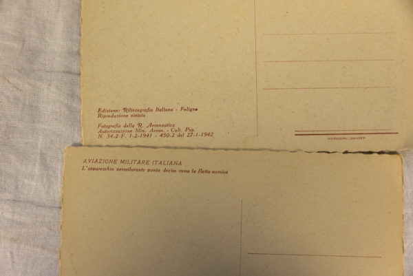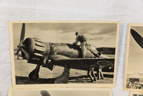 Lotto di 19 cartoline postali del periodo bellico raffiguranti aerei della Regia Aeronautica, tutte con didascalia nella parte posteriore. Mai usate in perfetto stato di conservazione.
