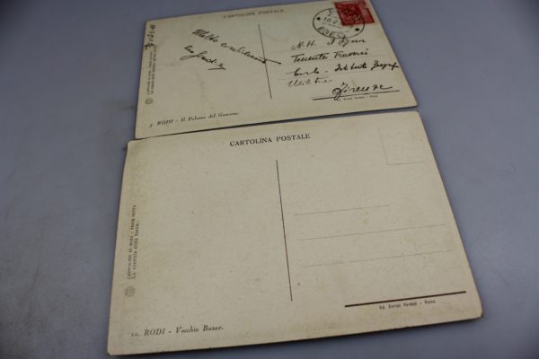 N° 4 cartoline postali raffiguranti Rodi “Italiana” durante la Seconda Guerra Mondiale. Una cartolina è “viaggiata” le altre no. Tutto in buono stato di conservazione.