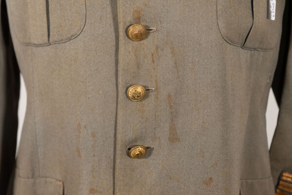 Giacca e berretto M.34, appartenuti ad un Colonnello del Genio Pionieri, entrambi completi dei corretti attributi, rimasti sempre insieme negli ultimi 80 anni. Molto usati, complessivamente in buono stato di conservazione, fatta eccezione per la tasca inferiore sinistra, le cui condizioni necessitano di un eventuale restauro. Giacca e cappello “matching” in super patina.
