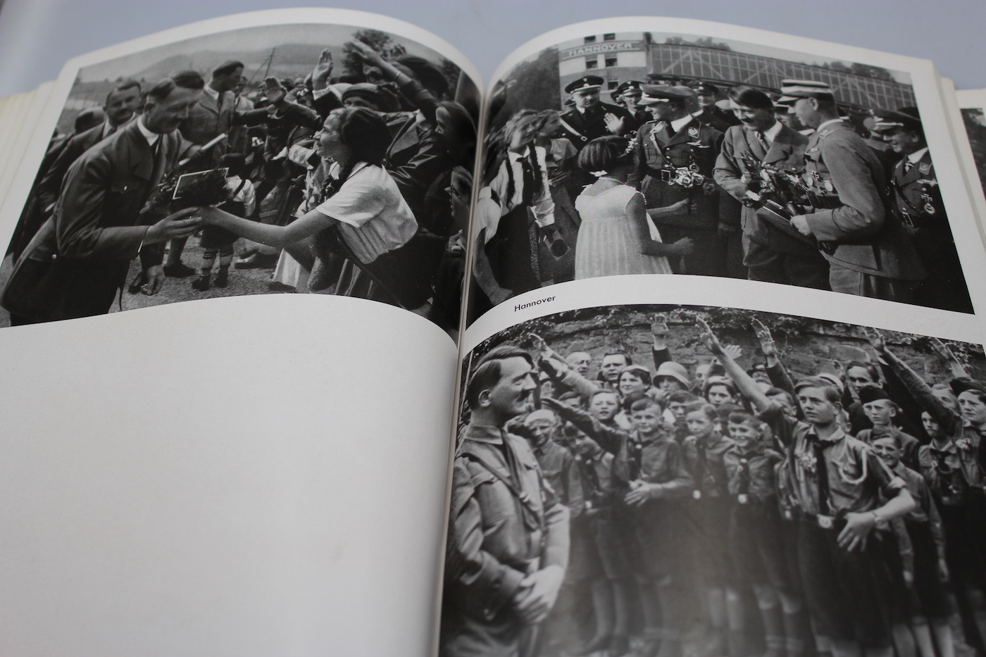 “Jugend um Hitler” – H.Hoffman, libro fotografico di una serie dedicata alla figura di Adolf Hitler, fatta dal suo personale fotografo di sempre, in questo caso si illustra il rapporto di Hitler con la gioventù Tedesca di quel periodo. Mancante della sovracopertina. Complessivamente in buono stato di conservazione.