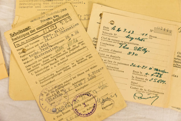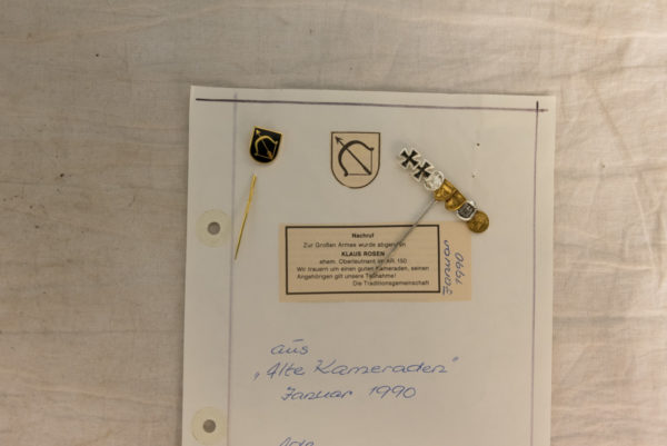 Periodo reducistico, con attestati vari di partecipazioni ad eventi tra veterani, spilla reggimentale e pin da bavero del 57, con le decorazioni ricevute durante la guerra “denazzificate”