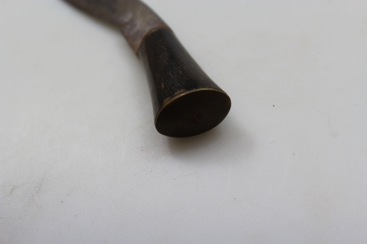 Kukri mignon di servizio, dimensioni totali cm 11, che di trovava nel suo alloggiamento nel fodero che trasportava il modello bellico grande, in dotazione ai Gurkha inquadrati nell’esercito Inglese nella Seconda Guerra Mondiale. Buono stato di conservazione.