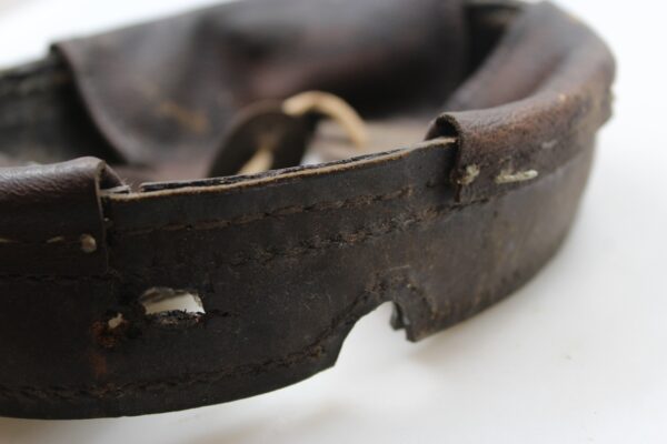 Liner per elmetto Tedesco M.16 della Prima Guerra Mondiale, con cerchione in cuoio di cm 58/59 di circonferenza, completo delle tre patte. Molto usato, completo in ogni sua parte, super patina.