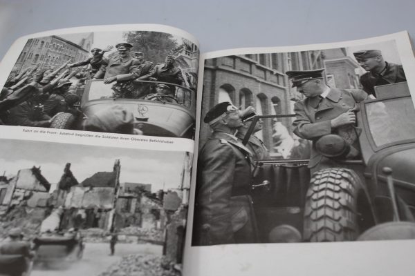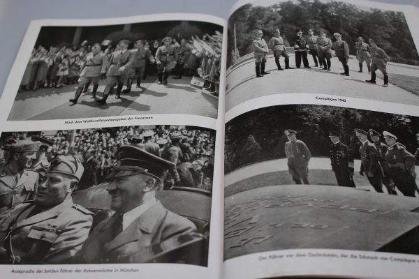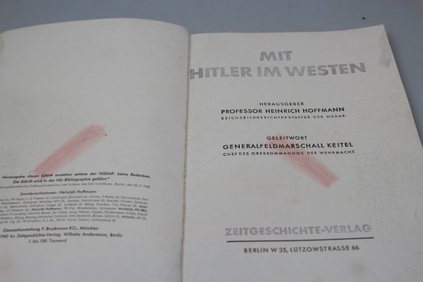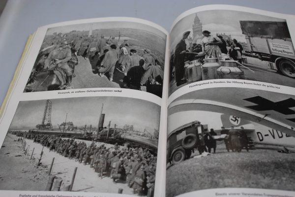 “Mit Hitler im Westen” – H.Hoffman, libro fotografico di una serie dedicata alla figura di Adolf Hitler, fatta dal suo personale fotografo di sempre, in questo caso si illustra la vittoriosa Campagna a ovest di inizio guerra. Buono stato di conservazione, sovracopertina restaurata.