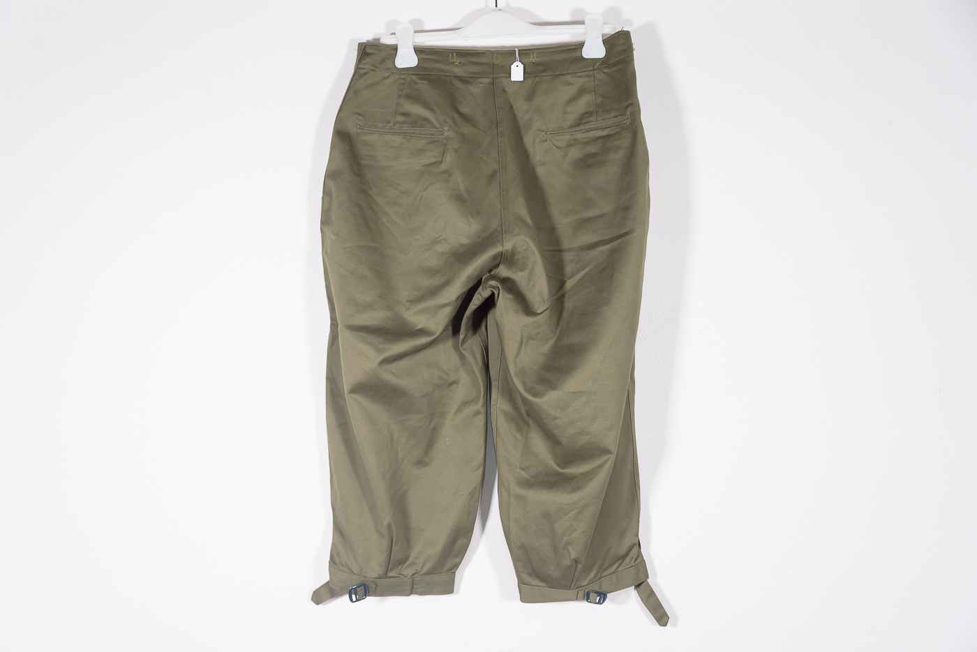 Interessanti pantaloni M.43 US Army della Seconda Guerra Mondiale, modificati per truppe da montagna. Usati, marcati con taglia, resti dell’etichetta, buono stato di conservazione.