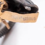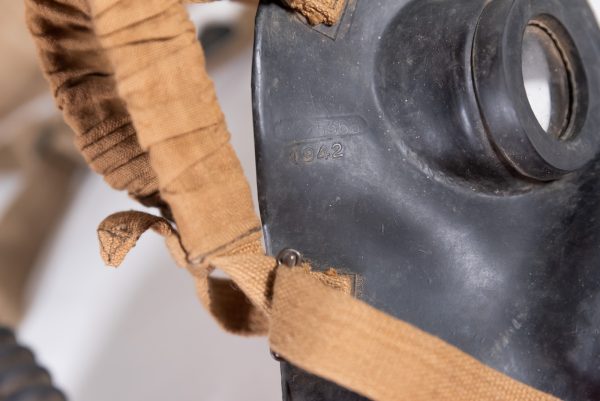 Maschera antigas O.41 Rs, detta “ottica” per i particolari oculari che facilitavano l’uso della stessa con strumentazione ottica. In dotazione a carristi e artiglieri, mono- matricola, stessi numeri sulla sacca e sulla maschera, completa di tubo corrugato collegato al filtro classico T,35, completa di sacca con tracolla. Poco usata, buono stato di conservazione.