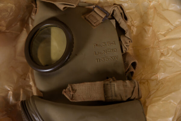 Maschera antigas PC-35 per popolazione civile, taglia I, ancora dentro la carta oliata della fabbrica, completa di accessori incluso il libretto uso/manutenzione e specifica sacca con tracolla per il trasporto. Perfetto stato di conservazione.