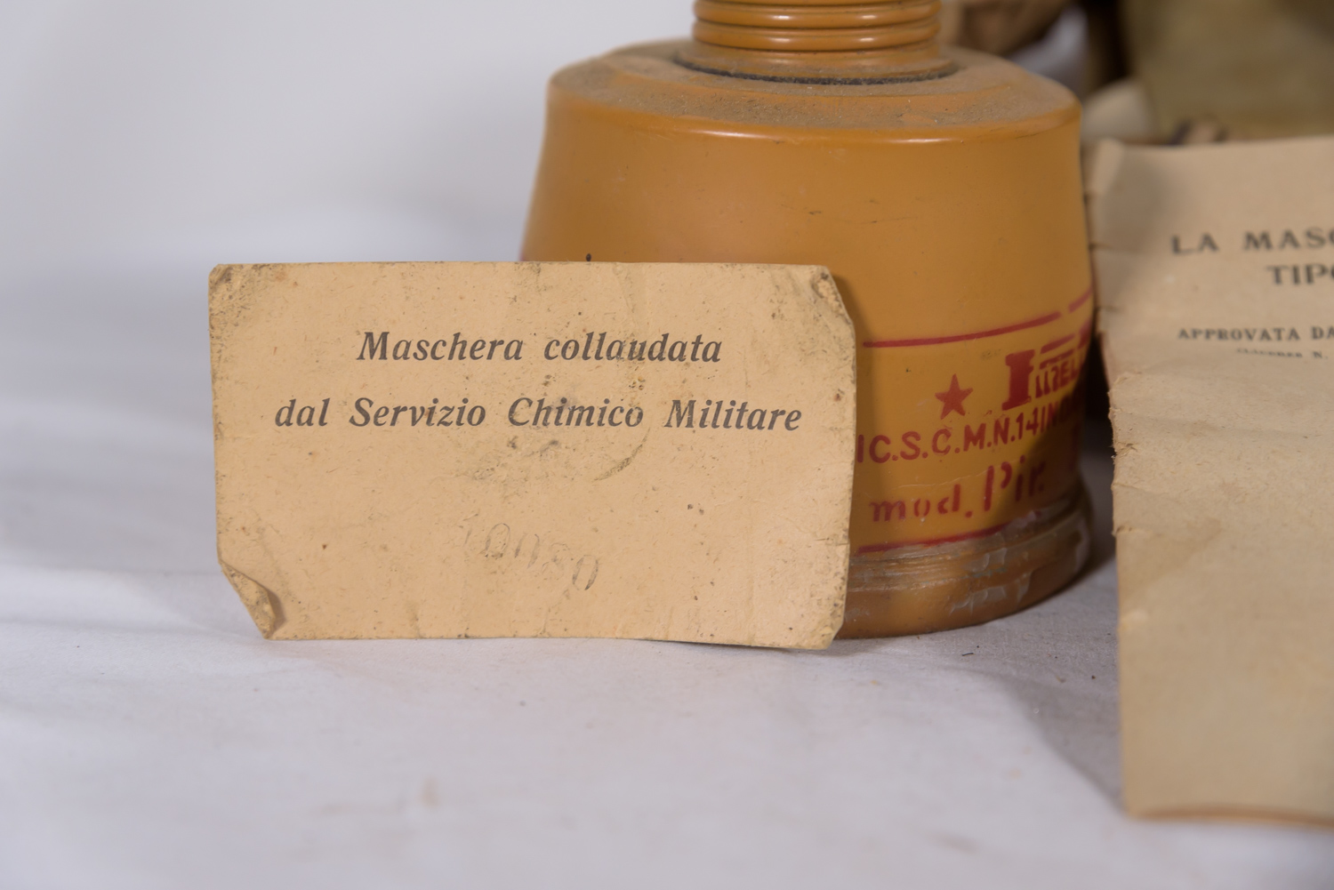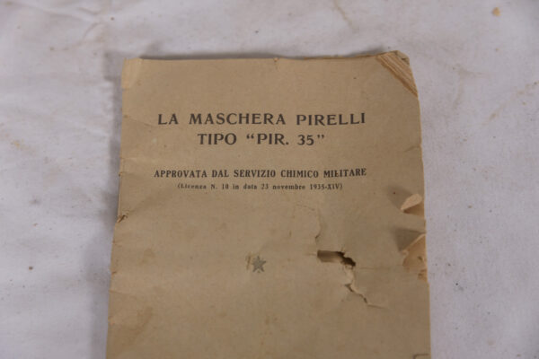 Maschera antigas PC-35 per popolazione civile, taglia I, ancora dentro la carta oliata della fabbrica, completa di accessori incluso il libretto uso/manutenzione e specifica sacca con tracolla per il trasporto. Perfetto stato di conservazione.