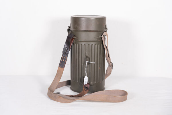 Maschera antigas Reichswehr anni 30′ , facciale in tela gommata, filtro FE-37-R e lenti di ricambio, contenitore cilindrico in colorazione feldgrau, appropriato e completo di cinghie per il trasporto. Poco usata, perfetto stato di conservazione.