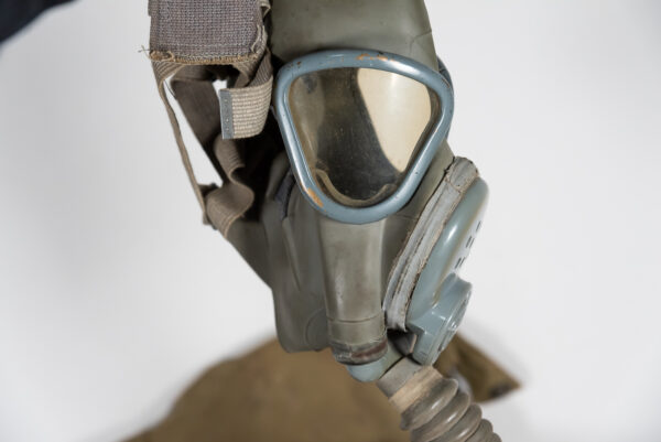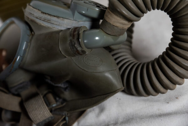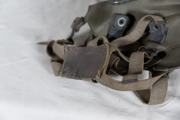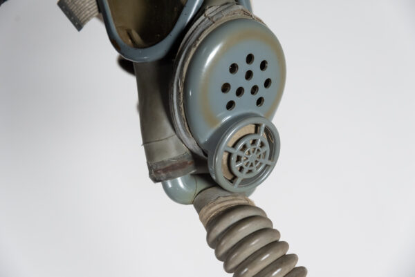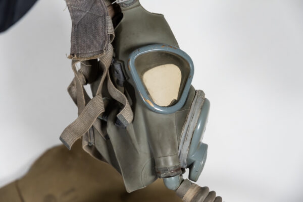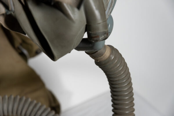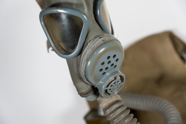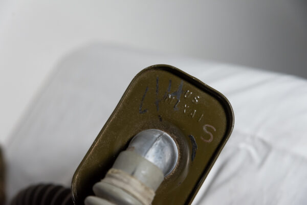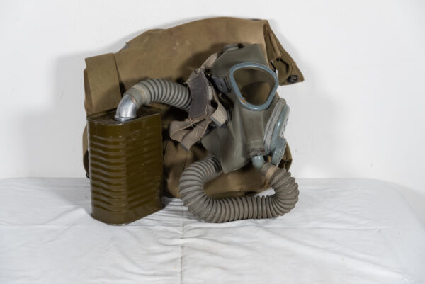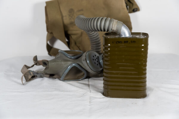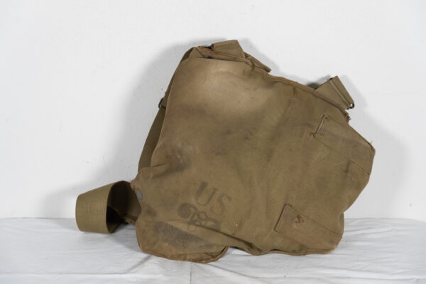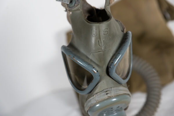 Interessante maschera antigas US Army della Seconda Guerra Mondiale, versione Fonica, completa di tubo corrugato, filtro e specifica sacca. Ottimo stato di conservazione.