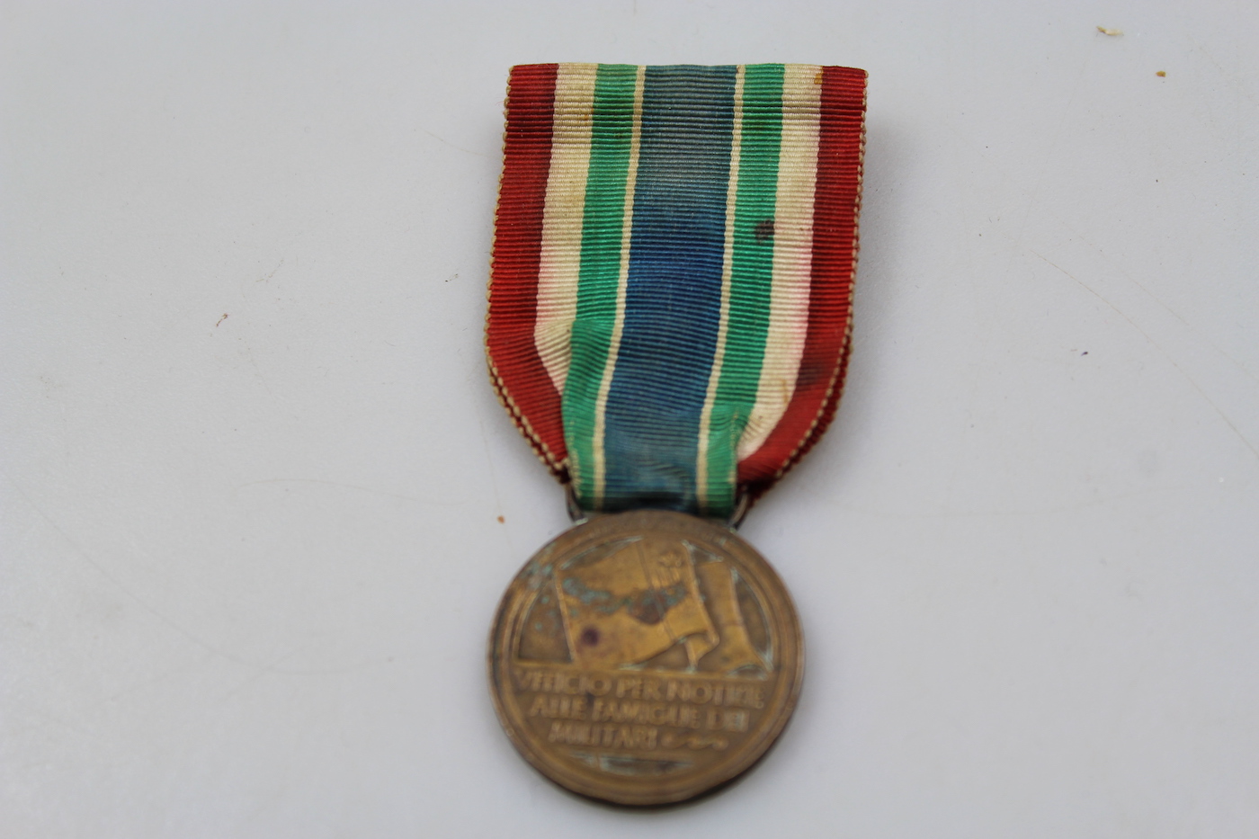 Medaglia Benemeriti personale uffici per le notizie ai familiari dei caduti della Prima Guerra Mondiale. Completa di particolare ribbon. Condizioni buone, leggermente ossidata.