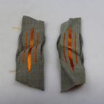 Coppia di litzen a “bassa visibilità” della Gendarmerie, con piping arancione. Mint condition, fondo di magazzino.