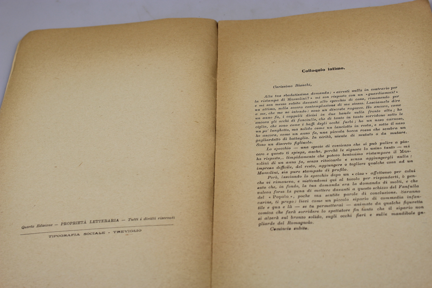 Della serie gli uomini del giorno : “Mussolini” – Colloquio intimo dell’autore con Benito Mussolini agli albori del potere, opera del 1922. Usato, buono stato di conservazione.