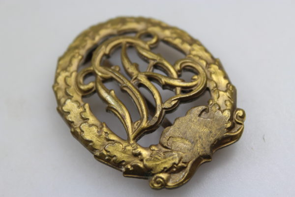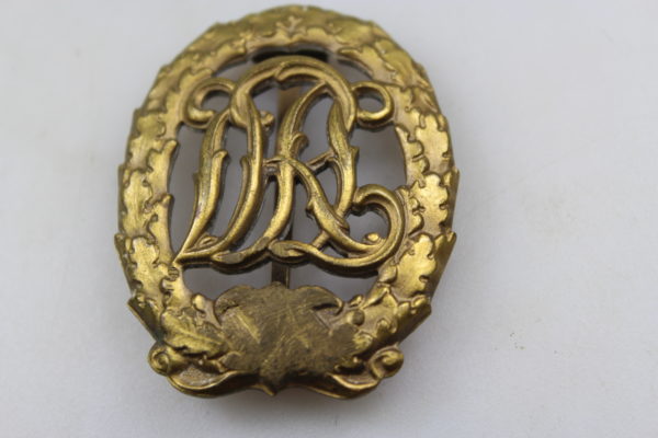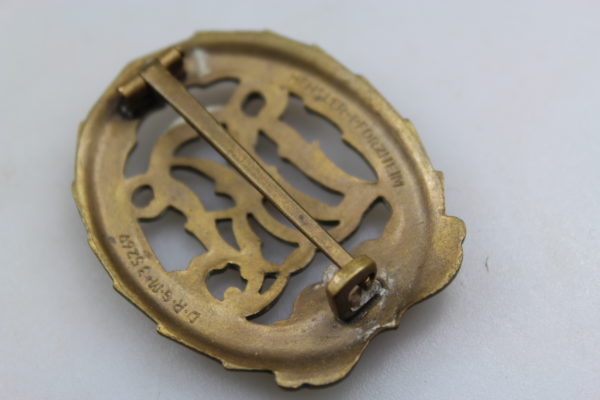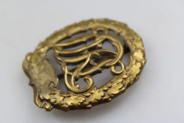 Distintivo DRL in bronzo con svastica abrasa. Buono stato di conservazione.