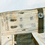 Pantaloni DAK da truppa di primo modello, versione fatto con tessuto a costine tipo velluto, con cintura incorporata in vita. Marcati con taglie e produttore. Mint condition, fondo di magazzino, mai usati.