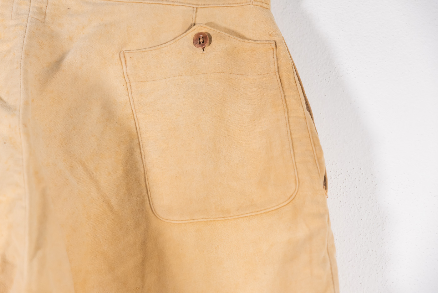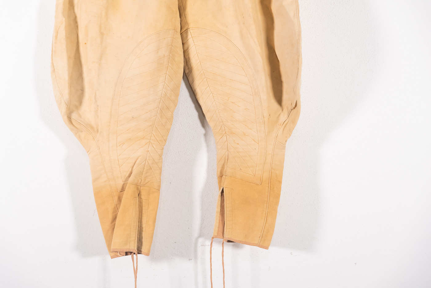 Pantaloni Coloniali da Ufficiale del Regio Esercito Italiano, fatti in fustagno in colorazione giallo sabbia. Usati, buono stato di conservazione.