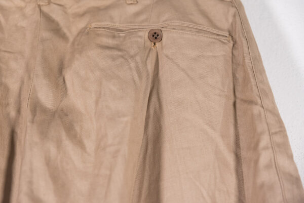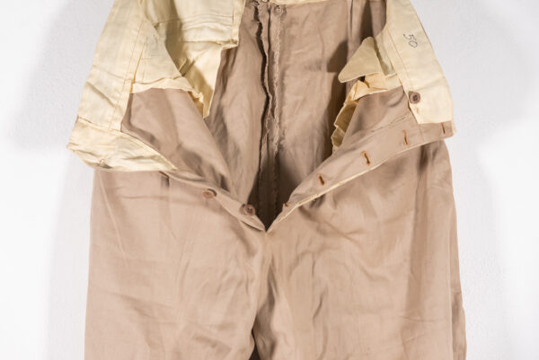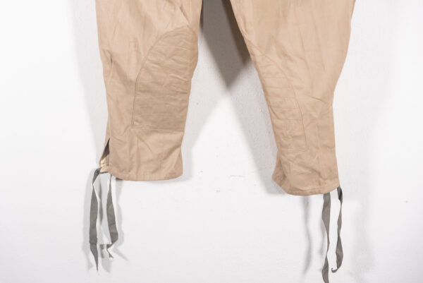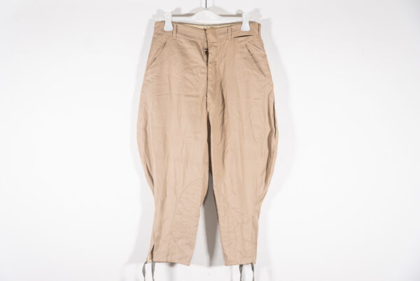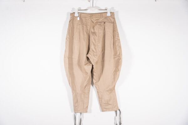 Ottimi pantaloni a sbuffo Coloniali da Ufficiale del Regio Esercito Italiano della Seconda Guerra Mondiale, fatti in gabardine leggera in cotone “mako”. Poco usati, eccellente stato di conservazione.