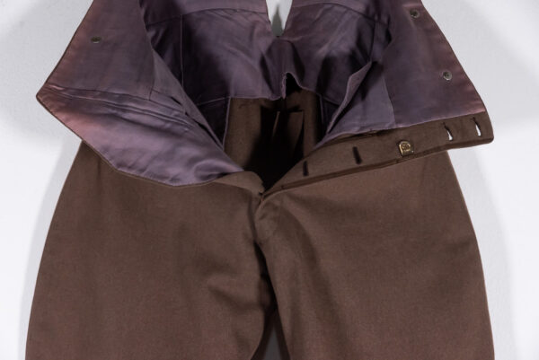 Interessanti ed eleganti pantaloni Coloniali “early”, stile anni 20′ da Ufficiale del Regio Esercito Italiano, fatti in panno di lana leggero. Poco usati, buonissimo stato di conservazione.
