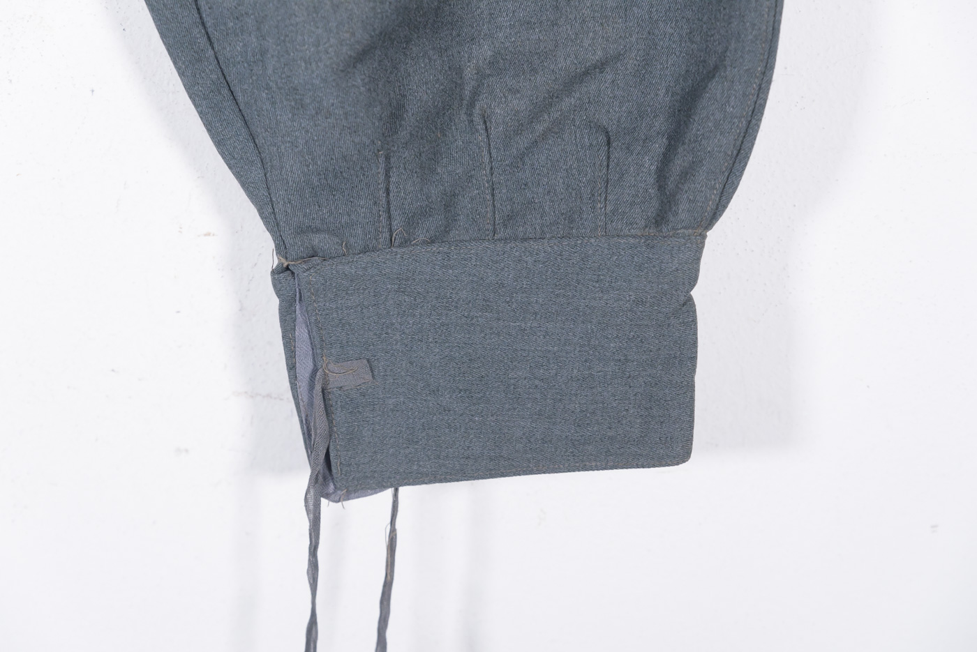 Pantaloni M.40 da truppa MVSN, fatti in gabardina pesante ritorta “Lanital”, con fodera in cotone spigato grigio, marcati con taglia e marcature MVSN. Mint condition, fondo di magazzsino.