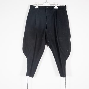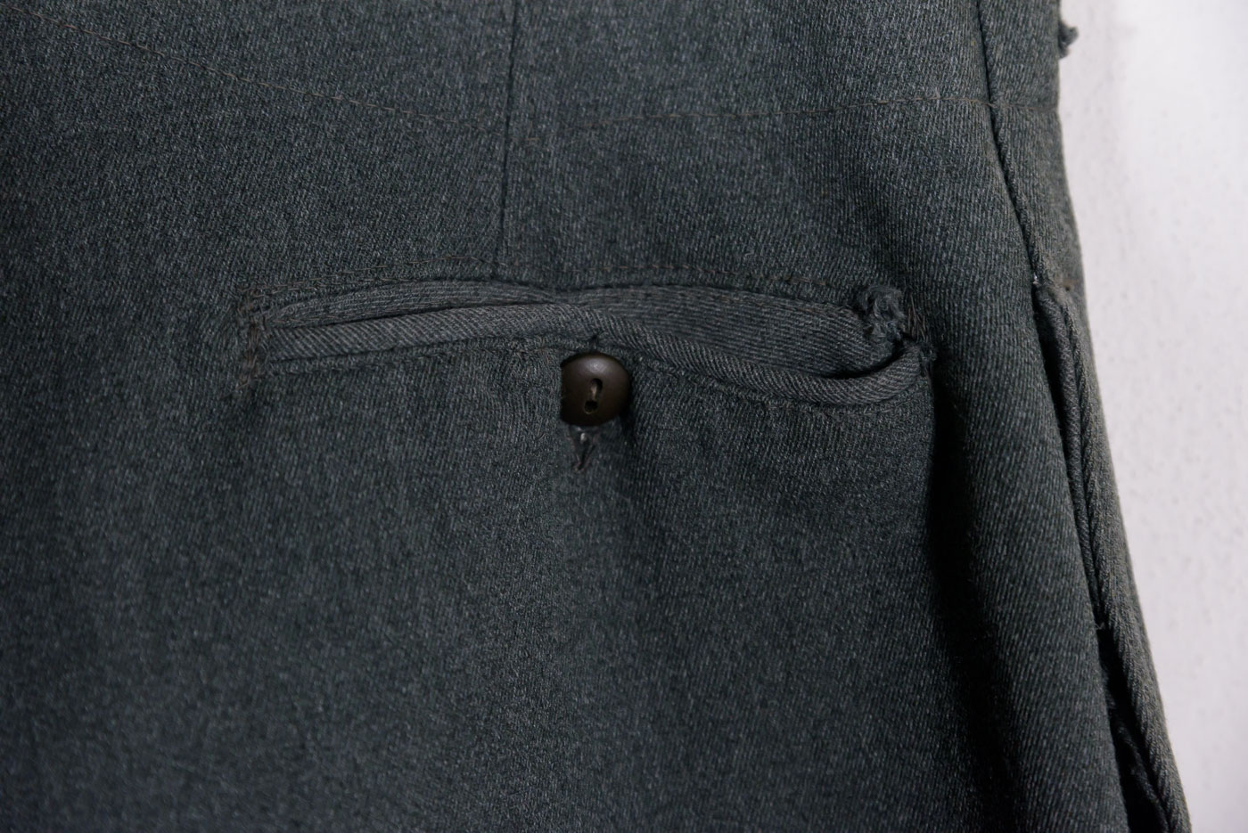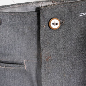 Pantaloni M.40 da truppa del Regio Esercito, fatti in gabardina pesante ritorta “Lanital”, con fodera in rayon spigato, marcati con taglia e M.C.M. Verona – Sala taglio. Mint condition, fondo di magazzino.