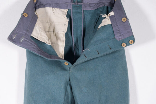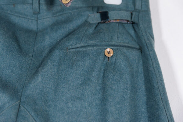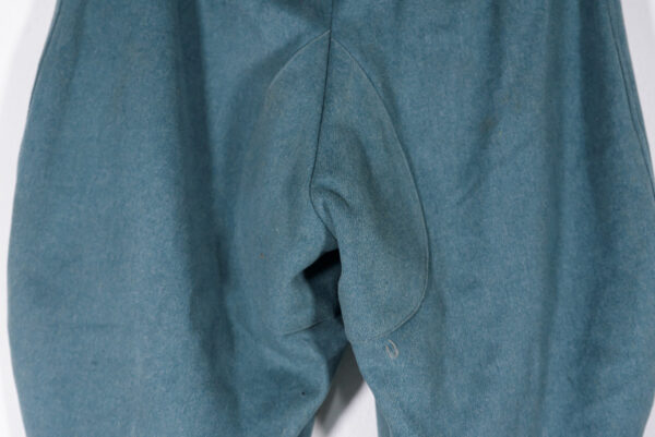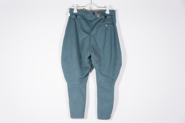 Pantaloni a sbuffo per Ufficiale della Polizei Tedesca, anni 50’/60′, modello identico a quello del periodo bellico, tessuto e colorazione identici a quelli bellici. Misura girovita cm 84. Ottimi per reenactment e altro. Usati, buono stato di conservazione.