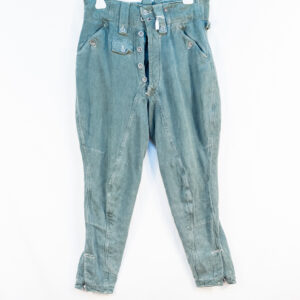 Ottimi pantaloni a sbuffo “sartoriali” per Ufficiale della Luftwaffe, fatti in elegante tricotine di lana pettinata, fibbie per regolamentazione ai fianchi, chiusura con bottoni ai polpacci. Poco usati, ottimo stato di conservazione.
