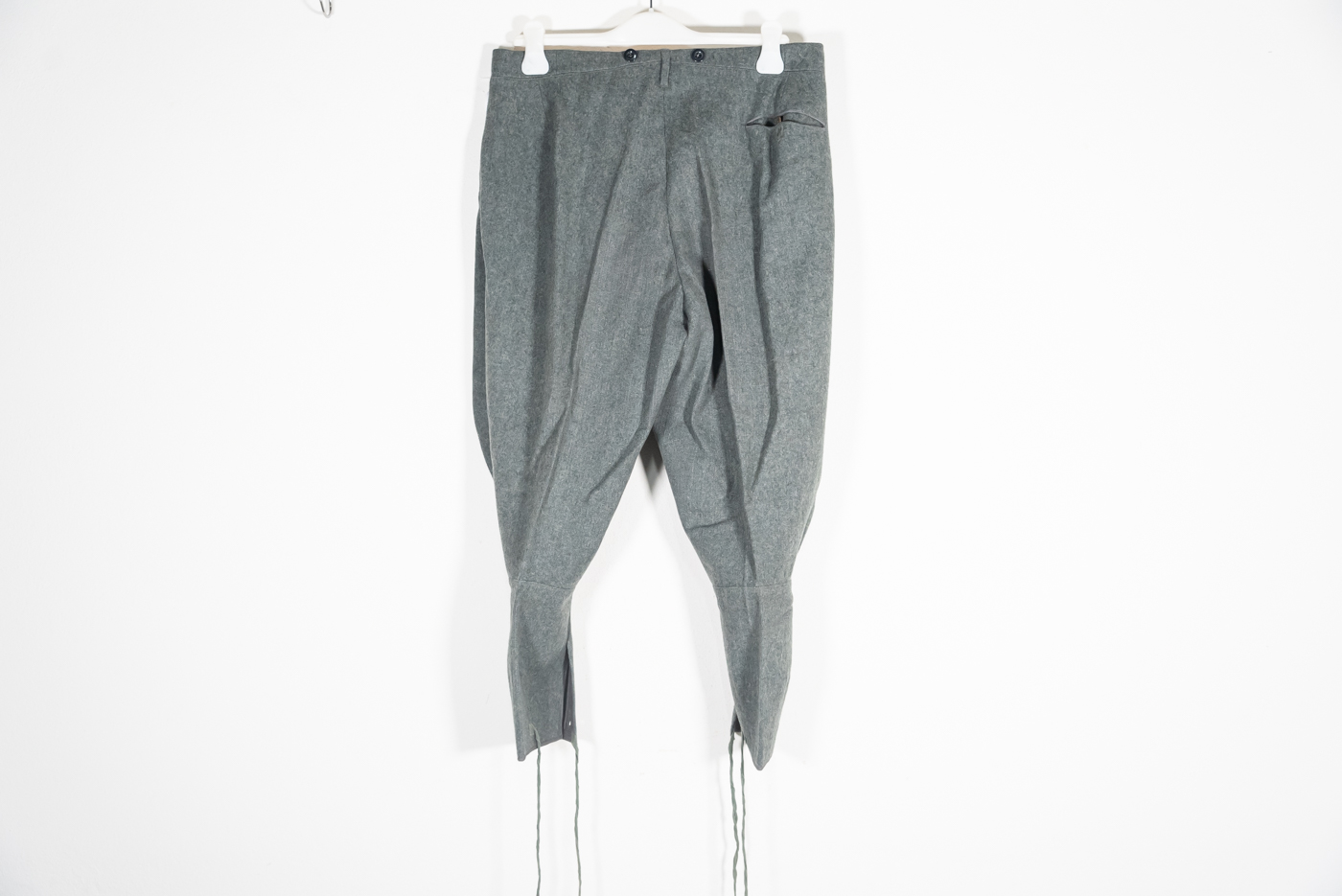 Pantaloni da Ufficiale M.40 del Regio Esercito Italiano, produzione d’intendenza, fatti in panno truppa grigio/verde con fodera spigata in cotone. Perfetto stato di conservazione, usati poco o nulla.