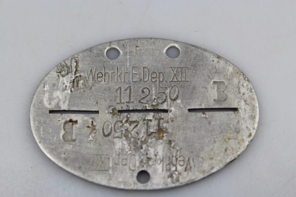Piastrino di riconoscimento : Wehrkr.E Dep.XII. Soldato di un distretto militare. Fatta in alluminio. Stato di conservazione non bello, vedi foto in dettaglio.