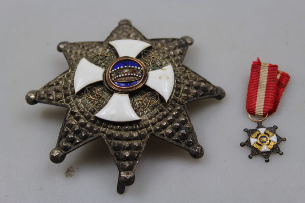 Placca da Commendatore dell’Ordine della Corona d’Italia Vittorio Emanuele III°, completa di mignon. Buono stato di conservazione.