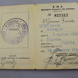 Tessera di appartenenza all’OND, Opera Nazionale Dopolavoro, sezione di Modena, anno X° E.F.,completa di foto, buono stato di conservazione.