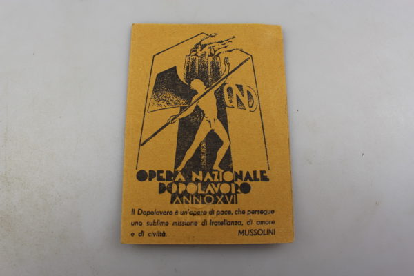 Tessera da iscritto all’OND della Sezione di Catanzaro,XVI° anno E.F. Buono stato di conservazione.