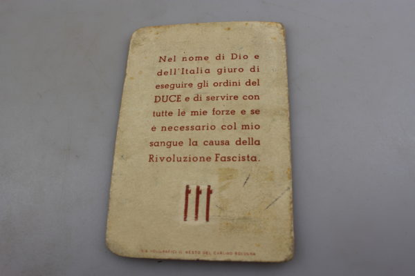 Tessera da “Balilla” iscritto alla GIL della Sezione di Salerno, anno XIX° E.F.. Buono stato di conservazione.