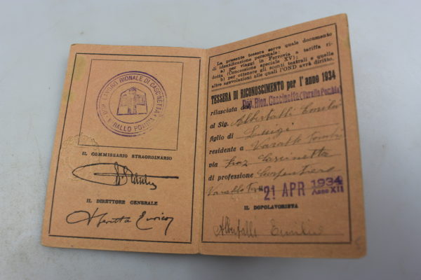 Tessera da iscritto OND per la sezione di Varese, anno XII° E.F. Buono stato di conservazione.
