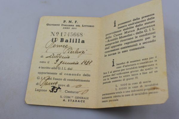 Tessera GIL “Balilla” XII°