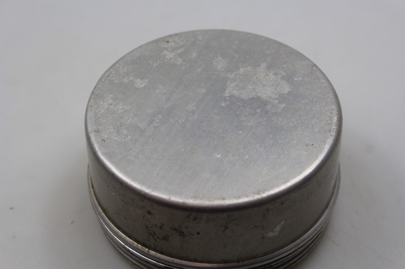 Portaburro o margarina in dotazione alla Wehrmacht, versione precoce fatta in alluminio, sostituita attorno al 1941 dalla versione più conosciuta fatta in bachelite. Usato, buono stato di conservazione.