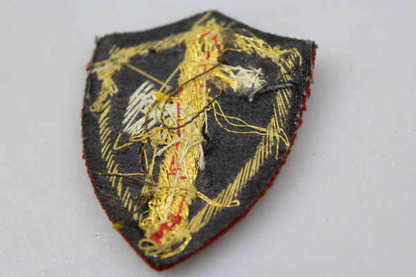 Ottima repro di un distintivo ricamato da giacca oppure fez del PNF, leggermente patinato. Buon livello di copia.