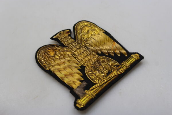 Ottima repro anni 80/90 di un’aquila da Dirigente del PNF, ricamata in canuttiglia metallica “fredda”. Non produzione Orientale. Già leggermente in patina. Dimensioni standard a questa tipologia di aquila.
