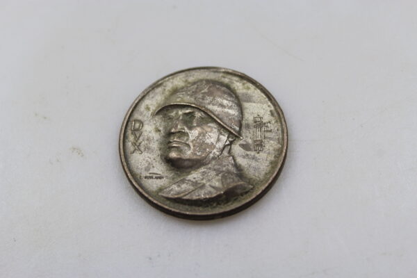 Repro medaglia DUX, su un lato rappresentato Benito Mussolini e sull’altro scritta Dux. In patina.