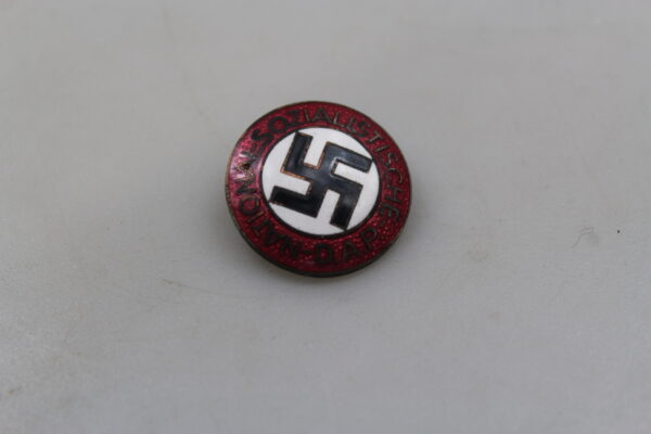 Pereftta repro, quasi indistinguibile, di un pin smaltato di un iscritto NSDAP, marcato RZM M 1/126 – karl Fl Schenkel – Pforzheim. Super patina.